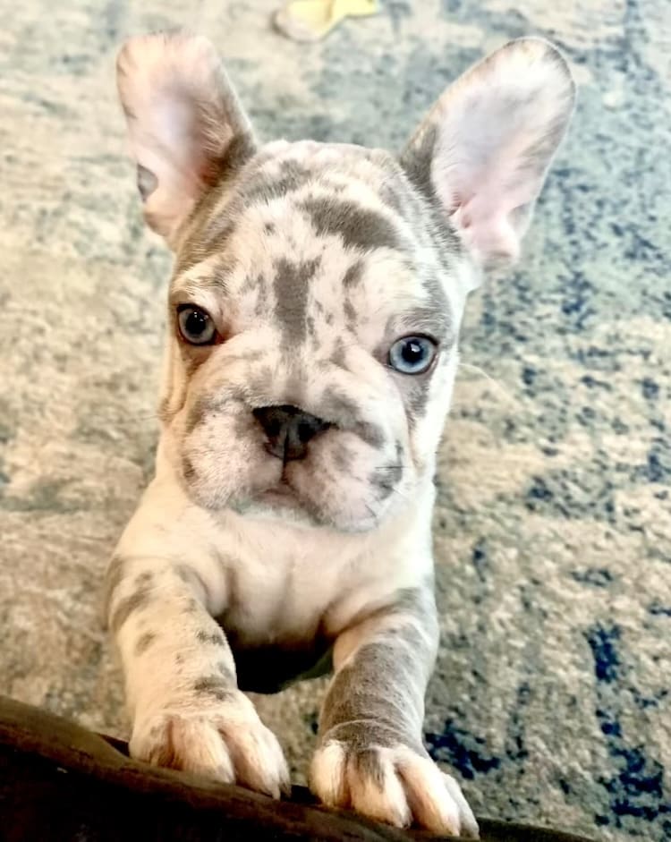 More common colors that are still absolutely stunning and a little cheaper in price include Blue French Bulldog and Lilac Frenchie as well as the Merle French Bulldog for sale.