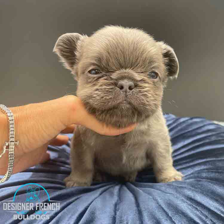 Like all other Frenchies, fluffers come in different colors including all of the common and rare French Bulldog colors. French bulldog genetics are fun to work with and we are able to create some of the most amazing fluffy frenchie colors you will ever see. While they are all gorgeous, the rarer colors of fluffy frenchies will cost more than the more common. For example, a Lilac tan Fluffy will cost more than a brindle fluffy. At the same time, a Isabella Fluffy will cost more than a Lilac Fluff.