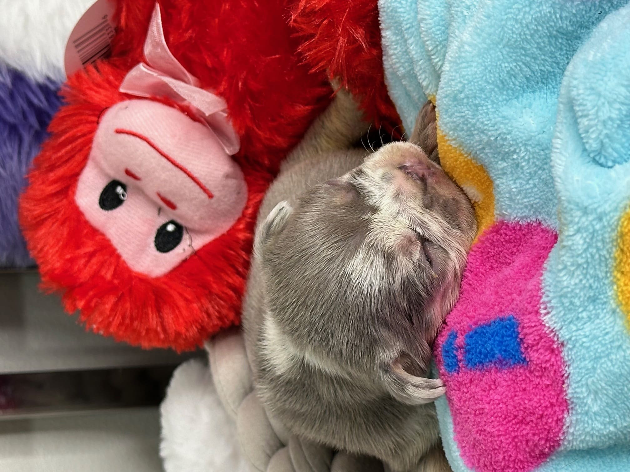 Like all other Frenchies, fluffers come in different colors including all of the common and rare French Bulldog colors. French bulldog genetics are fun to work with and we are able to create some of the most amazing fluffy frenchie colors you will ever see. While they are all gorgeous, the rarer colors of fluffy frenchies will cost more than the more common. For example, a Lilac tan Fluffy will cost more than a brindle fluffy. At the same time, a Isabella Fluffy will cost more than a Lilac Fluff.