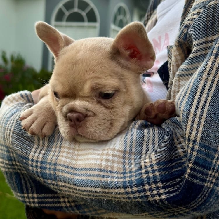 We breed for shorter bodies and legs, not long legged giraffes. Our pups have flat faces, perfect ropes and centered well set ears. You will not find a pup with a 4″ extended nose, long tail, long legs and long skinny neck when choosing our program! With our dedicated pup nanny, our pups fly anywhere in the USA directly to your local airport.