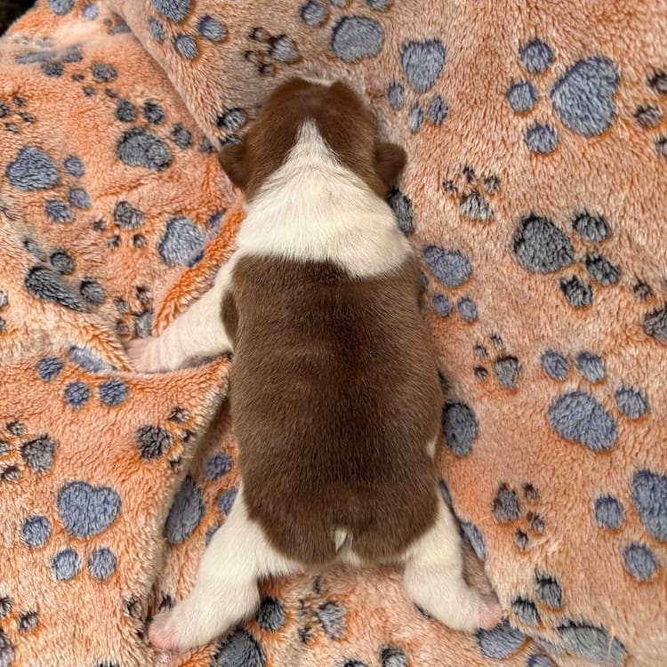 Rojo Pied Boy amazing puppy! He can be sold as a pet OR with full AKC rights to breed or show. Full price is $5999.00 this guy is going to be amazing. Big Rope, Carrying fluffy, Rojo. Son of our famous “Milk Dud” Rojo and Tan Big rope boy. Dad is 16 pounds, the smallest working Rojo big rope Rojo and tan carrying fluffy in the USA. This is one of the nicest boys ever produced here! If you have any questions about reserving a future puppy, please call 609-827-2645 or TEXT US NOW