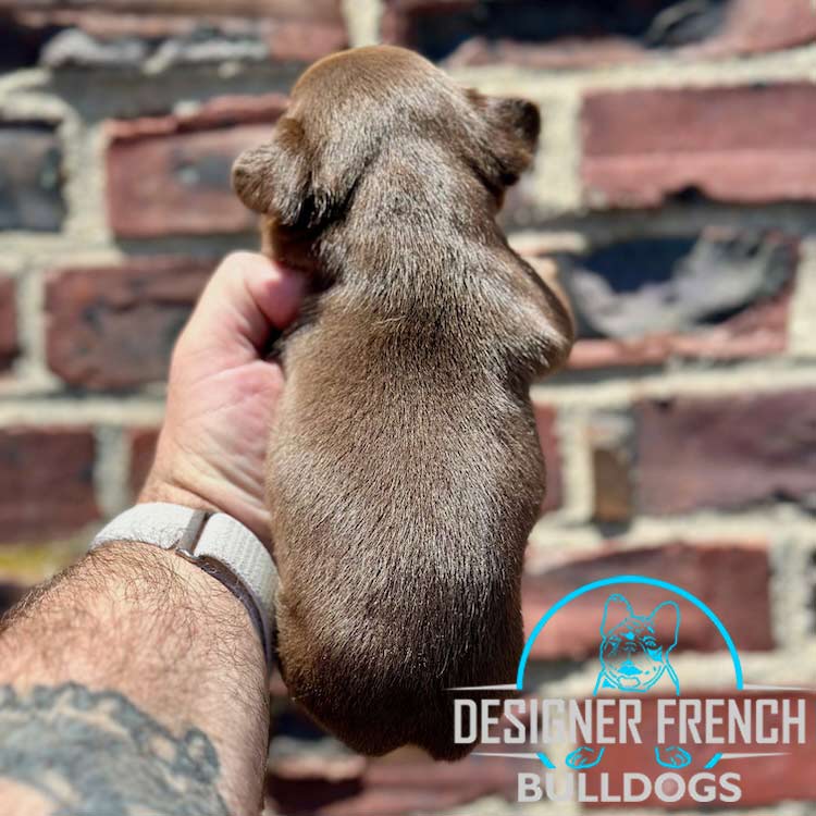If you want rare, than the Isabella French Bulldog is right for you. There are two shades including the normal Isabella french bulldog puppies and the New shade isabella Frenchie. Our Bella is a new shade with tan points and is absolutely stunning. She comes from dezigner bullz lines from the UK.